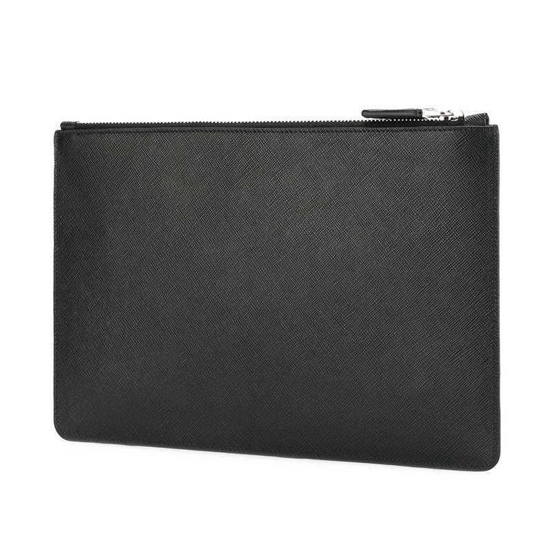 • 集美海外专营店PRADA 普拉达 经典款黑色压纹牛皮商务休闲小号手拿包男 2NG00501/4